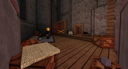 The cloth at Fort Merit is located on a crate in the same building as the Cauldron.