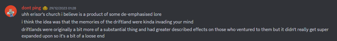 - The description references de-emphasised lore, with it being up in the air whether or not it's still canon.[1]
