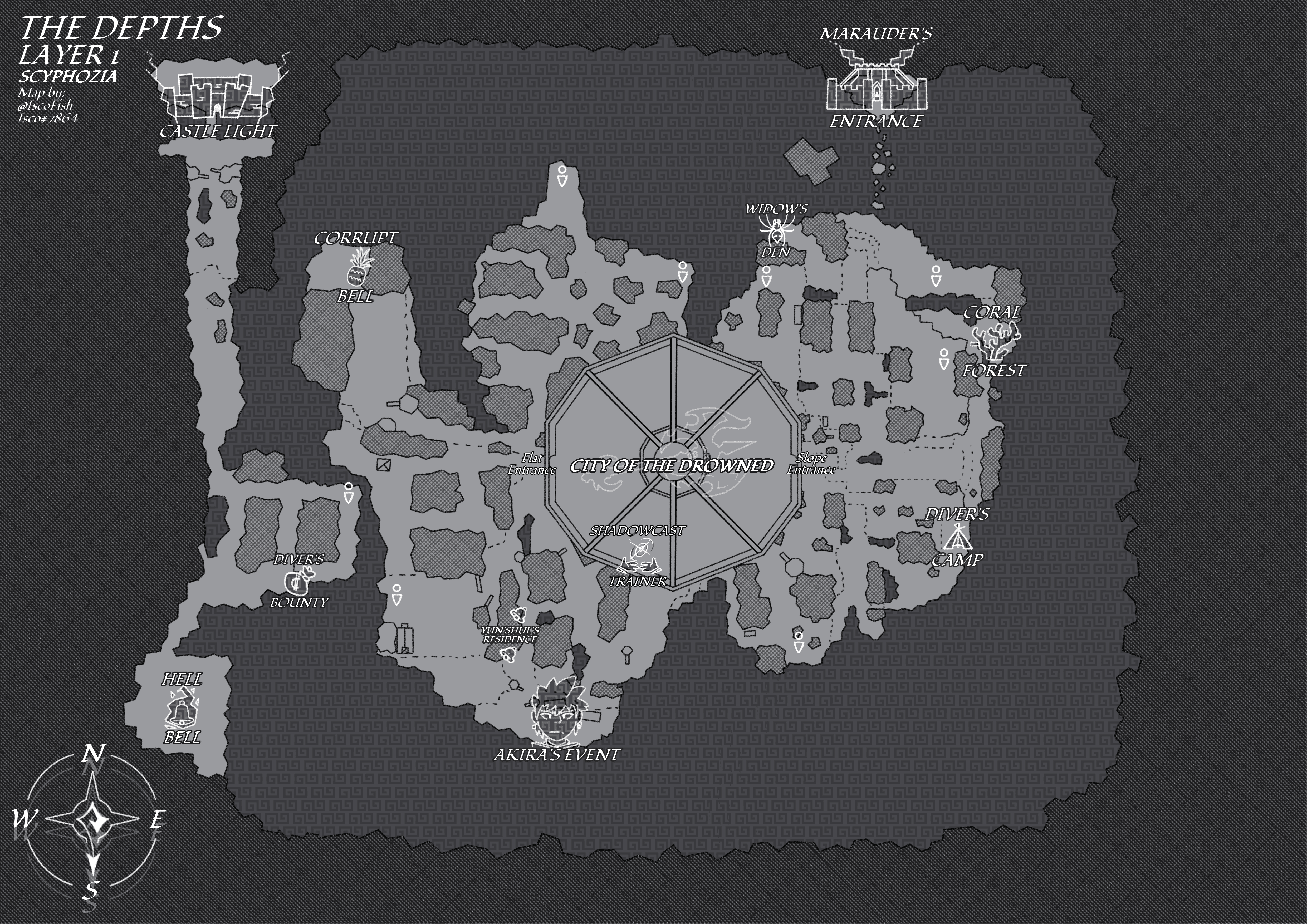 The First Layer of The Depths, also known as Scyphozia, is the first of nine layers of The Depths, embodied with the long-lost sunken civilization of Celtor. Players are sent here after dying while having a stained health bar, being sucked in by a Whirlpool, dying with the Hollow Echo Modifier, or dying in a Voidzone / the Voidsea.