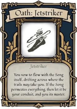 Oath: Jetstriker is one of the 17 obtainable Oaths in Deepwoken. It is highly praised (and detested) for its fluentness in agility. Allowing users to quickly escape nearly any dangerous situation with correct usage of its tools. This Oath also greatly takes advantage of the momentum mechanic, with Jetstriker's Talents being the only existing method to quickly gain momentum in a combat scenario.