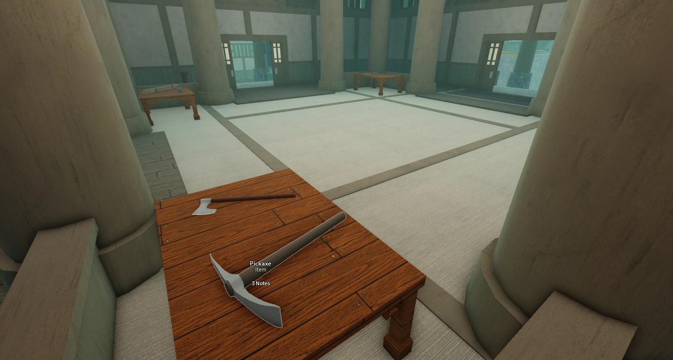 The pickaxe is a utility item that allows players to mine ore deposits by pressing E on them.