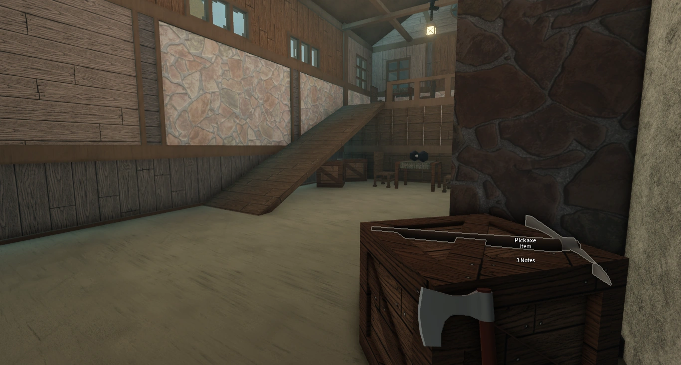 The pickaxe at Miner's Landing can be found on a crate inside the pub.