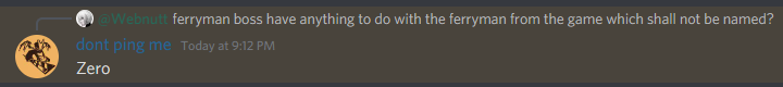 - If the Ferryman is in phase 2, "Dance, If You Can!" will play in the background.