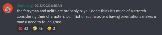 - Arch_Mage has stated that the Ferryman is probably bisexual [2]