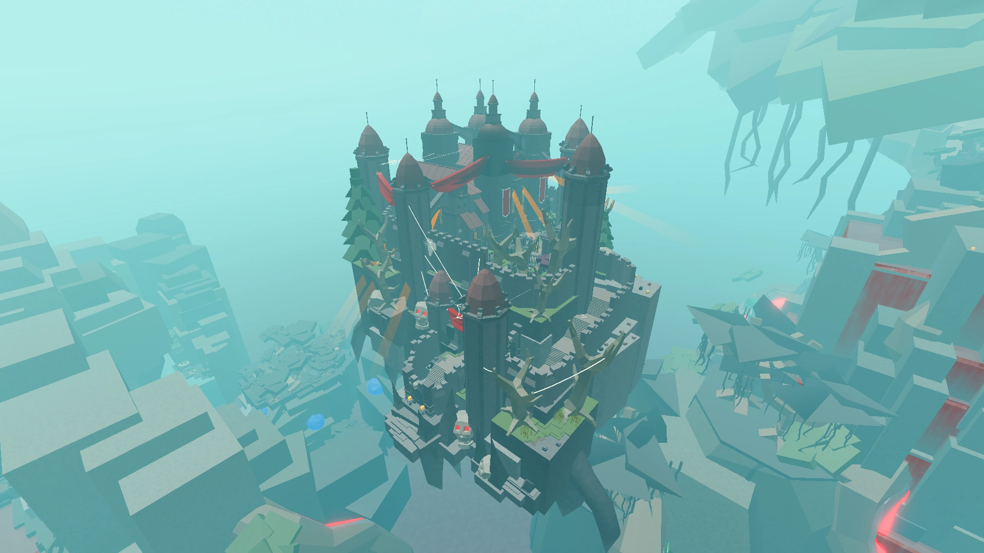 - On October 17, 2023 there used to be a floating gate above the castle. However, it was presumably removed during one of the bug fix updates following the release of Hallowtide.