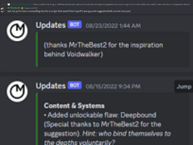 - Both Voidwalker and Deepbound were suggested by user MrTheBest2, who was later made a tester for a period of time (On October ~13, 2025 MrTheBest2 regained tester).[1]